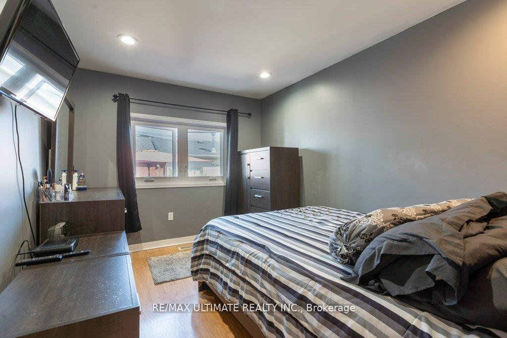 This detached home is just steps away from the vibrant amenities along St. Clair Avenue West and features numerous upgrades and renovations. The main floor boasts an open-concept layout with a large kitchen that flows into the dining area, highlighted by pot lights and a sizable window. The primary bedroom is also located on the main floor, providing views of the backyard and access to a four-piece bathroom. A convenient mudroom leads out to the backyard. On the upper floor, you will find two spacious bedrooms and a full bathroom, along with potential space for a large deck or the possibility of creating a master retreat. The finished basement includes a separate entrance, a large kitchen that connects with the recreation room, and an additional large bedroom. The property features a large backyard with a concrete patio and a double garage, and it is conveniently located just steps from transportation along Dufferin Street and St. Clair Avenue.