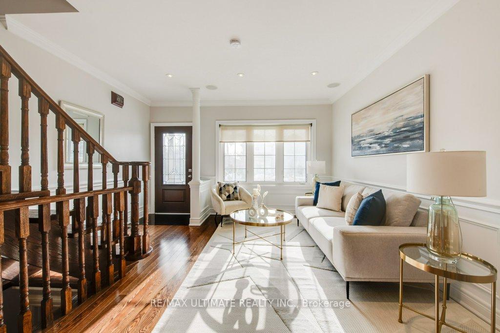 Beautifully Renovated Home on a Large Private Lot with Driveway and Laneway Access This fantastic property sits on an expansive lot and features a private driveway plus laneway access-ideal for added parking, privacy, or workshop use. Completely renovated throughout, the home offers a bright open-concept main floor with both front and side entrances. The living and dining areas showcase hardwood floors, crown moulding, and elegant wainscoting, creating a warm and inviting atmosphere. The modern kitchen is designed for both style and function, featuring a large Centre island, granite countertops, wine fridge and wine rack, ceramic backsplash, and a breakfast bar with a walkout to the patio-perfect for indoor-outdoor entertaining. The home offers exceptional flexibility with two primary bedrooms, including one on the main floor with a semi-ensuite and double closet, which can also serve as a spacious family room. An open oak staircase leads to the upper level, where you'll find a generous primary suite complete with a 5-piece ensuite featuring a jacuzzi tub, separate shower, custom cabinetry with marble counters, his-and-hers closets, and a walkout to a private balcony. Two additional well-sized bedrooms with closets complete the upper level. The professionally finished basement impresses with high ceilings, double-door entry, and an open-concept living and dining area overlooking a modern kitchen with ceramic backsplash-ideal for extended family or entertaining. A rare triple garage with its own lower level and a 2-piece washroom offers incredible potential for a workshop, studio, wine cellar. With its wide private driveway, laneway access, and thoughtfully upgraded interior, this home delivers outstanding space, privacy, and versatility for a variety of lifestyles. The lot includes the numbers 62 and 64 of Teignmouth Ave, potential garden suite.