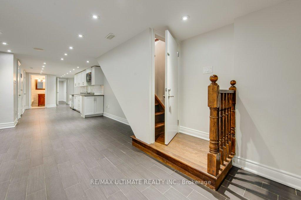 Beautifully Renovated Home on a Large Private Lot with Driveway and Laneway Access This fantastic property sits on an expansive lot and features a private driveway plus laneway access-ideal for added parking, privacy, or workshop use. Completely renovated throughout, the home offers a bright open-concept main floor with both front and side entrances. The living and dining areas showcase hardwood floors, crown moulding, and elegant wainscoting, creating a warm and inviting atmosphere. The modern kitchen is designed for both style and function, featuring a large Centre island, granite countertops, wine fridge and wine rack, ceramic backsplash, and a breakfast bar with a walkout to the patio-perfect for indoor-outdoor entertaining. The home offers exceptional flexibility with two primary bedrooms, including one on the main floor with a semi-ensuite and double closet, which can also serve as a spacious family room. An open oak staircase leads to the upper level, where you'll find a generous primary suite complete with a 5-piece ensuite featuring a jacuzzi tub, separate shower, custom cabinetry with marble counters, his-and-hers closets, and a walkout to a private balcony. Two additional well-sized bedrooms with closets complete the upper level. The professionally finished basement impresses with high ceilings, double-door entry, and an open-concept living and dining area overlooking a modern kitchen with ceramic backsplash-ideal for extended family or entertaining. A rare triple garage with its own lower level and a 2-piece washroom offers incredible potential for a workshop, studio, wine cellar. With its wide private driveway, laneway access, and thoughtfully upgraded interior, this home delivers outstanding space, privacy, and versatility for a variety of lifestyles. The lot includes the numbers 62 and 64 of Teignmouth Ave, potential garden suite.